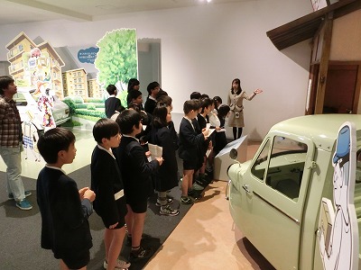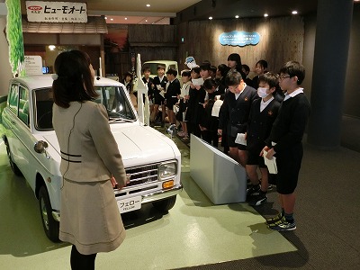 クルマの用途と発展のコーナーでは、1950年代の「ミゼット」から現在の「コパン」やエコカーの「ミラ・イース」まで、時代とともに移り変わっていったクルマについて説明を受けました。