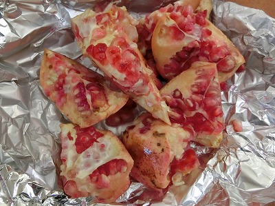 3〜4人に1個あり、ザクロを割り、中の小さなルビー色の実を食べます。