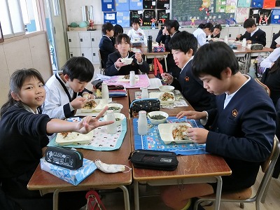 ビビンバは、牛と豚のひき肉に味付け(砂糖、酒、しょう油、コチジャン)がされたもの、ナムルはだいこん、もやし、にんじん、ほうれん草(砂糖、しょう油、塩、ごま油で味付け)でした。配膳時にご飯上にかけ、スプーンで混ぜながらいただきました。