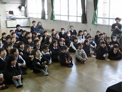 東淀川図書館おなかしボランティアの「とことこ」さん3名の方が来てくださり、2時間目に1年生、3時間目に2年生、4時間目に3年生が多目的室で、お話や絵本の読み聞かせをしてくださりました。