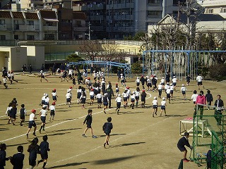 寒い中、休み時間に運動場のトラックを走り、体力づくりをしています。