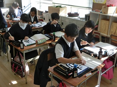 お手本をなぞったり、何度もお手本を確認してバランスを考えたりと、いい文字に仕上げようと頑張っていました。