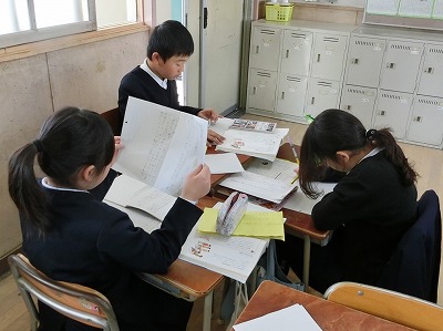 学習のまとめとして「和の文化」の大テーマの下、班で発表するテーマを決め、情報の収集、発表のための原稿や掲示物の作成を分担して進めていました。