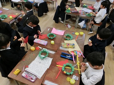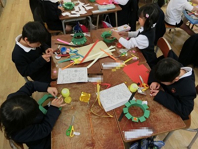 作業が進むにつれて、とってもかわいらしくなっていきます。明日も続きの作業をするそうです。懇談時には教室に飾って、華やかな雰囲気をかもし出すのでしょうか?