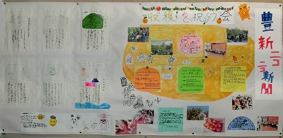 今月の新聞のテーマは「収穫を祝う会」と「2学期の思い出や冬休みの楽しみ」です。新聞委員会のメンバーが給食時間などに教室を回り、アンケートや聞き取りをして記事にまとめています。