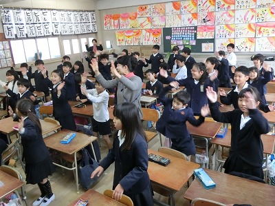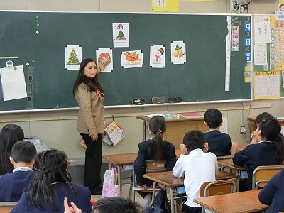 次に、「Jingle Bells(ジングルベル)」の歌を、英語で、さらに振り付きで、ノリノリになって歌いました。