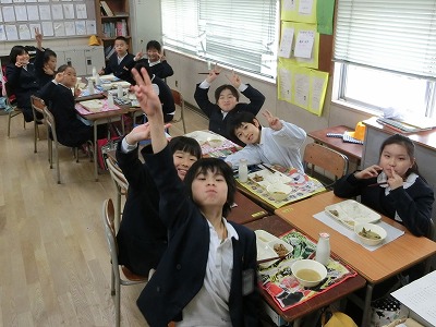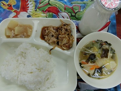 豚肉のしょうが焼きは、定番中の定番のおかずです。子どもたちも大好きで、お替りをせがみ、大盛りにしていました。低学年さんもしょうがを嫌がらずにおいしそうに食べていました。