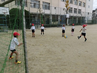 そんな中、1時間目から運動場で2年生が元気よく「むかでキック」の試合をしていました。