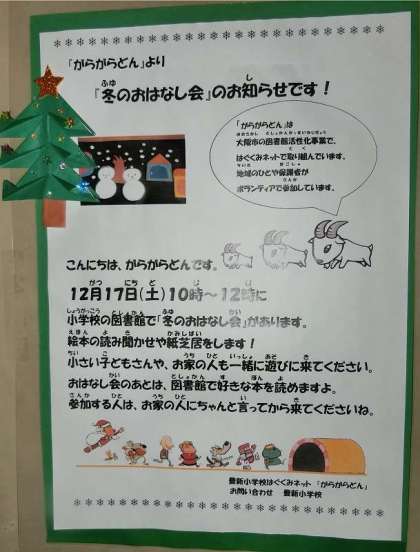 「がらがらどん」の皆さんが楽しいお話をしてくださりますので、小さな弟さんや妹さん、保護者の方々も是非とも参加していただければと思います。