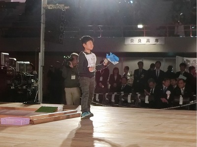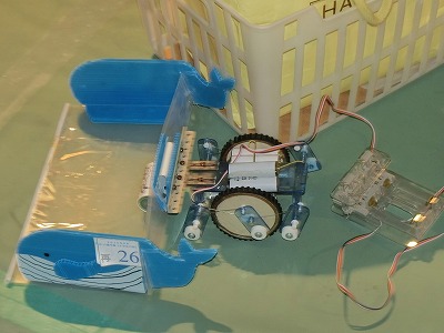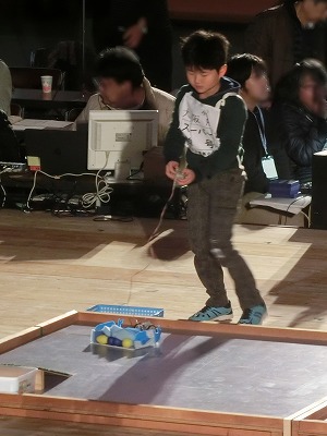 5年生のI・Rさんは、試合開始早々、スムーズな立ち上がりで、アイテムを収納後、ゴールエリアへ。しかし、ロボットの勢いで、たまご型アイテムを落としてしましました。まずは、他のアイテムをゴールエリアへ投かんし、その後、たまご型アイテムを取り込みに行くのですが、あせってしまい中々うまくいきません。最終的には、相手より一歩先にパーフェクトとなり、何とは初戦を突破しました。