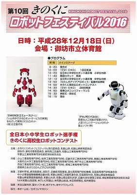昨日の12月18日(日)、和歌山県御坊市の御坊市立体育館で、「第10回きのくにロボットフェスティバル2016」が開催され、そのプログラムの中の「全日本小中学生ロボット選手権小学生の部」に3年連続で、本校の5年生と6年生児童が大阪府代表として出場しました。