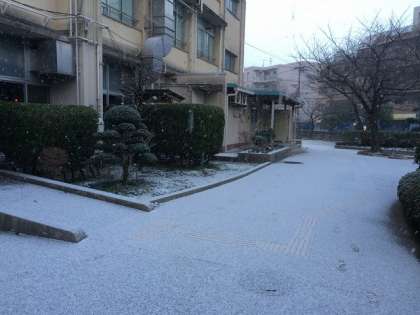 学校もうっすら雪景色 (1月15日)