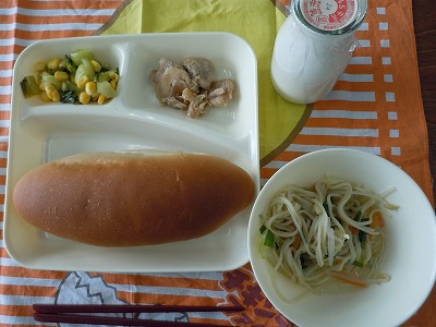 ラーメンは、豚骨スープ仕立てで、焼き豚、白菜、ニンジン、もやし、ニラが入っていました。子どもたちの大好物のラーメンです。入っているお野菜も、スープも全て完食です。