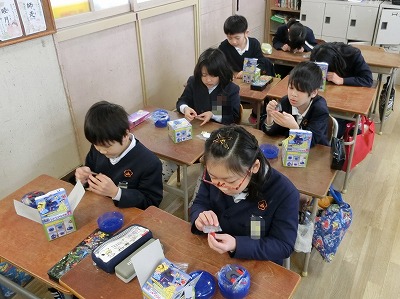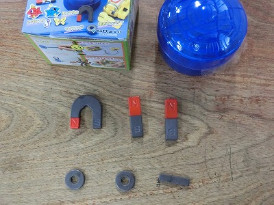 磁石の教材は、以前に紹介した「豆電球」の実験に使った同じ教材セットに入っています。