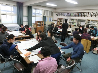 放課後には会議室に集まり、全員で研究協議を行い、先ほどの授業について、多くの観点からの振り返りました。