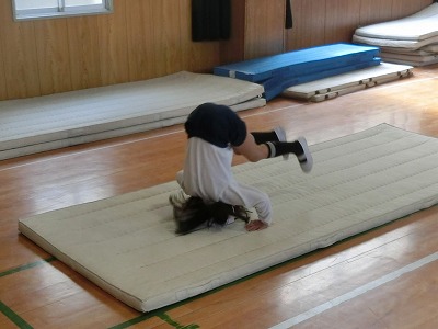 このクラスでは、講堂で種々の運動を組み合わせた「サーキットトレーニング」をしていました。