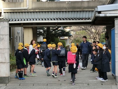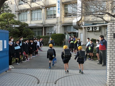 正門側に3年生、裏門側に4年生が集まってくれ、大きな声で「おはようございます」とあいさつをしてくれていました。