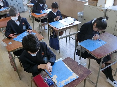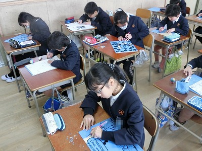 お城やお寺などの風景、花瓶に入ったお花、アニメなどのキャラクターなど、思い思いの下絵を描き、彫刻刀で彫り始めていました。