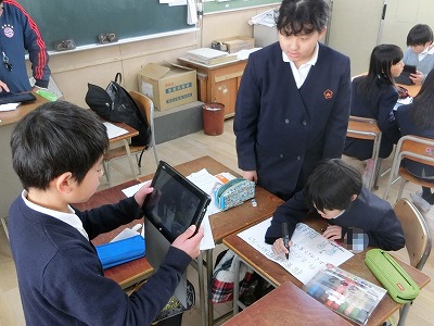「伝えよう、委員会活動」という題材を学習していて、自分たちの委員会活動を、教科書では「リーフレット」の作成ですが、タブレットを用いて活動報告をまとめ、発表しようとしています。