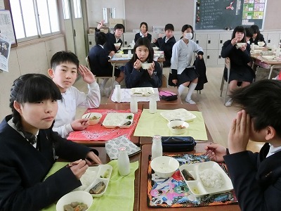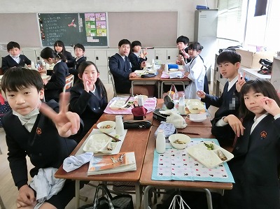 よく給食に出てくる「さごし」や「赤魚」など大きな切り身とは違い、今日はちょっと手こずる【さんま・骨付き】でした。一人分はさんま1/2匹で、おなかの部分になるか尻尾の部分になるかは運です。低学年さんも上手におはしを使って、骨を取って食べることができていました。きれいにとった骨を自慢げに見せてくれる子もいました。