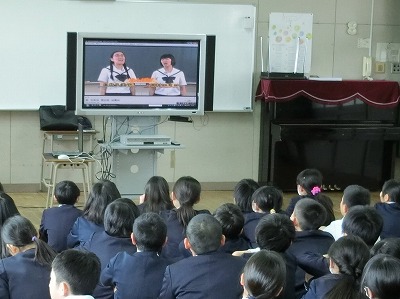 小学校後半から、中学生に多いとされる犯罪の話があり、前半は、万引き、自転車どろぼう、インターネットの怖い部分などについて、DVD映像を見ました。後半は、その内容について、犯罪に誘われても断る勇気、友達がしそうになっていたら、止めさせてほしい、先生やお家の人に相談してほしい、と具体的なお話がありました。