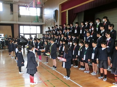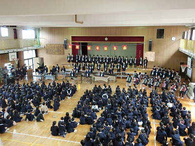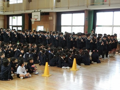 中:最後は6年生です。参観の時にも披露した「YELL」の合奏です。心ひとつにした演奏を在校生にプレゼントしてくれました。