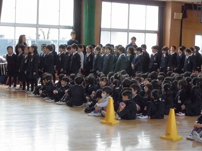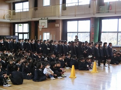 中:3年生は「みんながみんな英雄」の合唱です。明るく、勇気づけられる歌声でした。