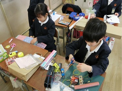 理科の教科書にある単元で「おもちゃランドへようこそ」があり、これまでに理科の学習で学んだことをもとにしてのものづくりです。