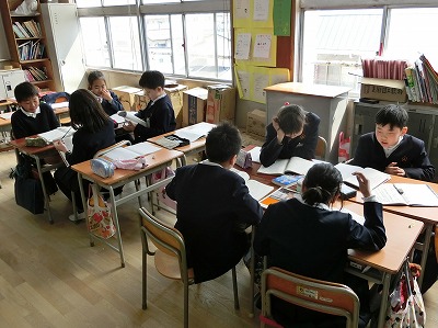 4年生 音読劇の練習中 (3月9日)