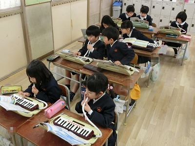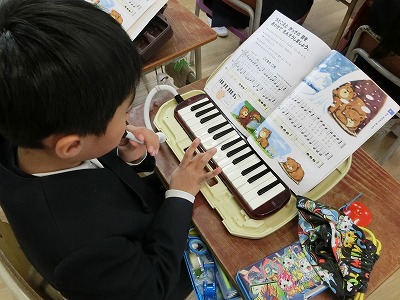 今日は「鍵盤ハーモニカ」の練習をしていました。