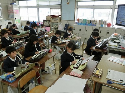 楽しそうに音楽の学習をしていました。