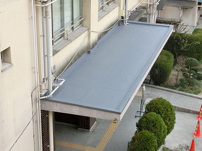 1月30日の朝に剥落した玄関のひさし部分ですが、ようやく、今日、工事の最終を迎えました。