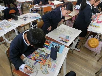 4年生も作品袋のデザインにとりかかっていました。