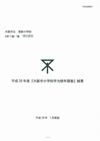 データ処理のミスがあり、配付が遅くなっていました「大阪市小学校学力経年調査の個人結果個票」が本日の昼前に届きました。