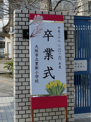 上:玄関の「卒業式」看板