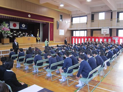 昨日の雨が嘘のような澄み渡った青空のもと、来賓の皆様、地域の皆様、保護者の皆様、多数の方々にご臨席を賜り、厳粛な雰囲気のなか、滞りなく、式は進行しました。