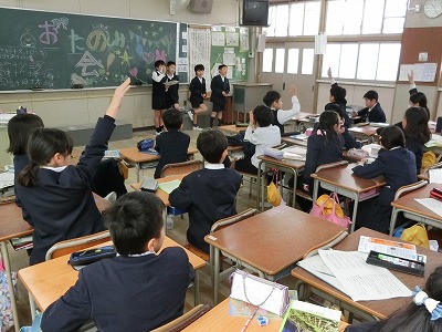 今日は多くのクラスで、今年度最後の「お楽しみ会」や「お別れ会」をしていました。