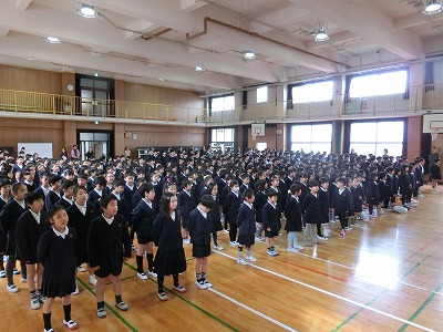 講堂にて、2年生から6年生が集まり、平成29年度着任式・1学期始業式を行いました。(1年生は教室で担任の先生と学級活動です)
