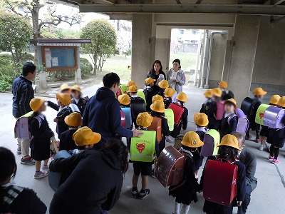 担任の先生に加え、応援の先生方もついて、決められた通学路を自分の家の近くのポイントまでみんなで帰りました。
