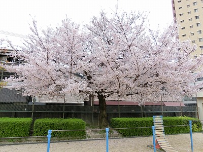 中:プール横、鉄棒の後ろの桜