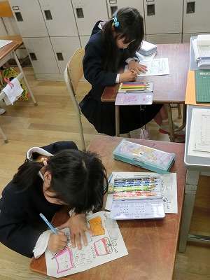 2年生のこのクラスでは、自己紹介のためのカードを作成していました。