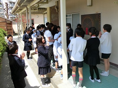 自分の担当を受け取ったら進んでいき、管理作業員室前あたりで、整列をし直し、みんなが揃ったら、教室に向けて出発です。