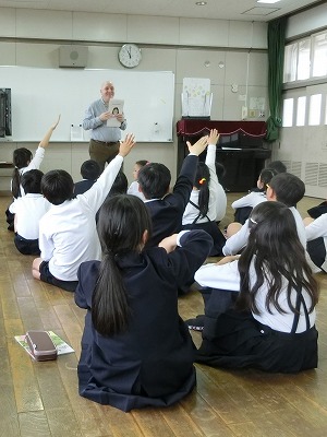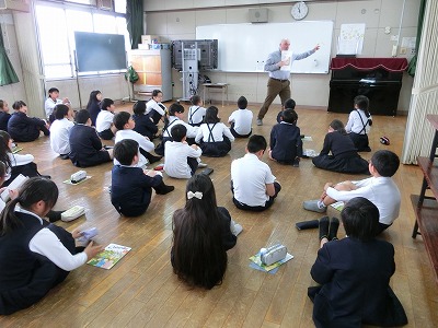 5年生は、この2年間は、校長経営戦略支援予算を活用してネイティブの Mahal 先生に教えていただいていたので、Julian 先生は初めてです。しかし、あいさつ、歌、ゲーム等、楽しんで学んでいました。