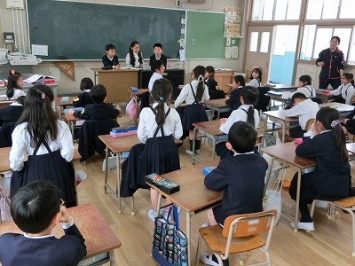 始まり、終わりには、6年生が1年生を教室まできちんと送り迎えです。