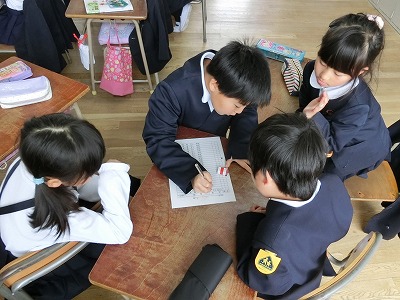 今日は、居住地ごとに教室に集まり、委員長・副委員長・書記、また、近隣どうしで班を編成し、班長も決めました。