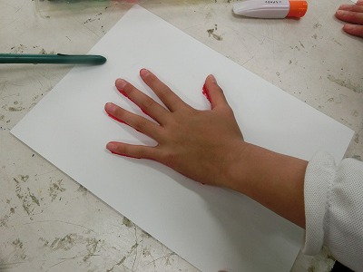 画用紙にしっかりと押し付け、手首よりゆっくり離していきます。
