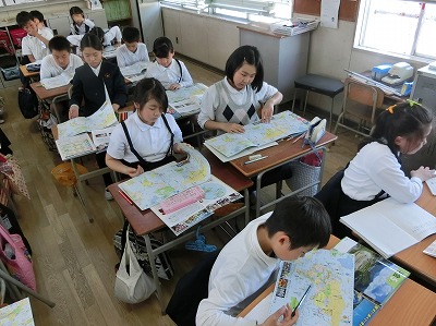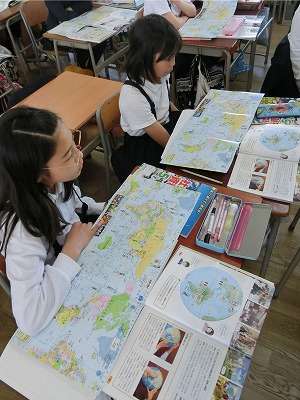 社会科の最初の単元「わたしたちのくらしと国土」の中の、「日本は世界のどこにある?」という内容を学習していました。