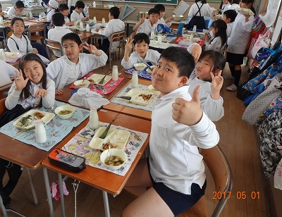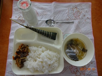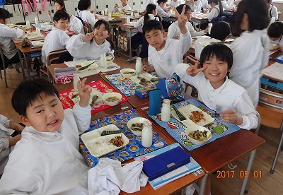 今日は、こどもの日の行事献立で、4年生の様子です。