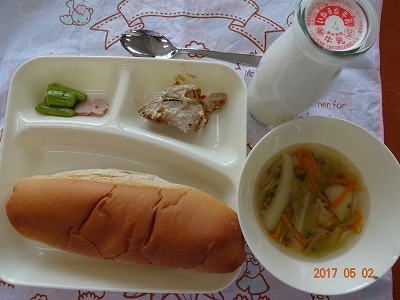 スープには、にんじん、たまねぎ、キャベツ、じゃがいも、パセリが入っていて栄養満点です。あっさりとした味付けで美味しかったです。