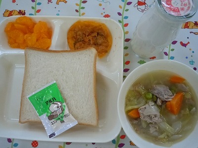 ※2年生のクラスにおじゃまして、給食風景の写真を撮ったのですが、加工の段階で子どもたちの写真のデータが壊れてしまったようです。すいません。また、改めて、おじゃまします。